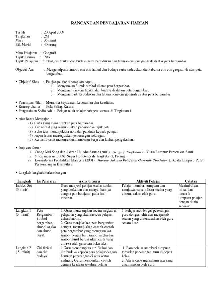 Contoh Rancangan Pengajaran Harian Geografi Tingkatan 5