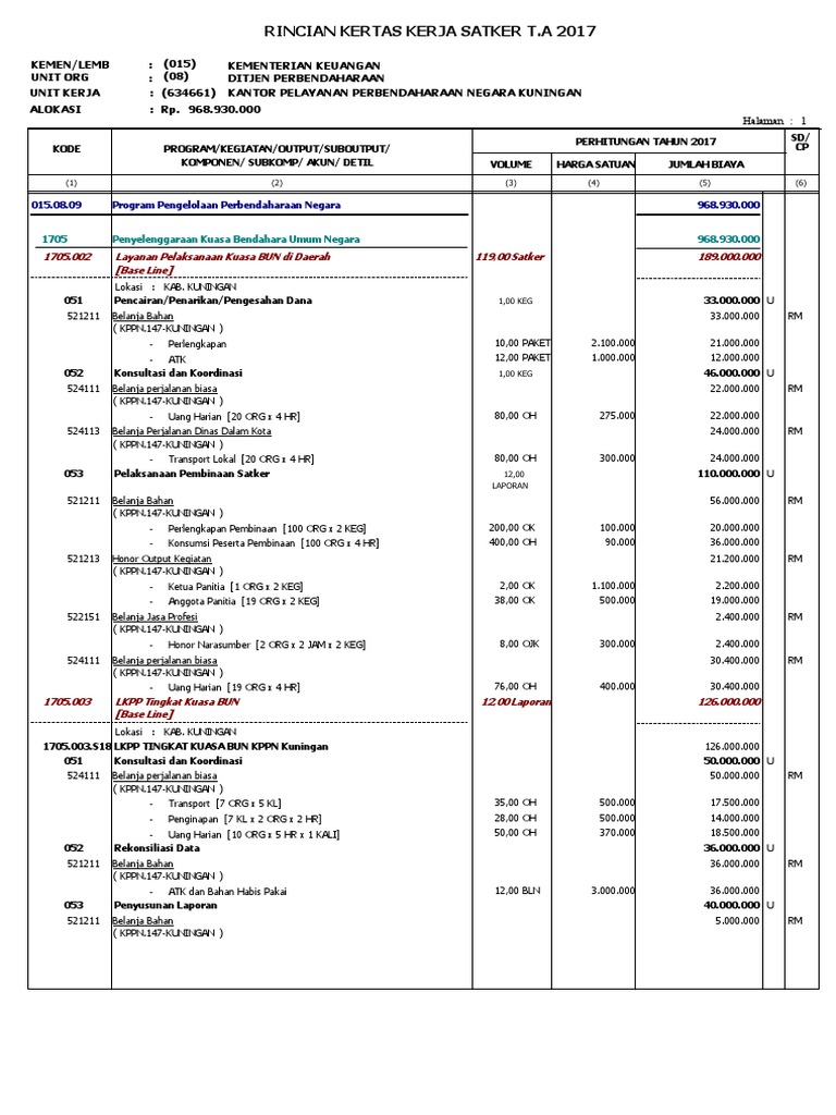 Rincian Kertas Kerja Satker Pdf